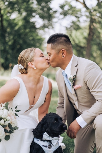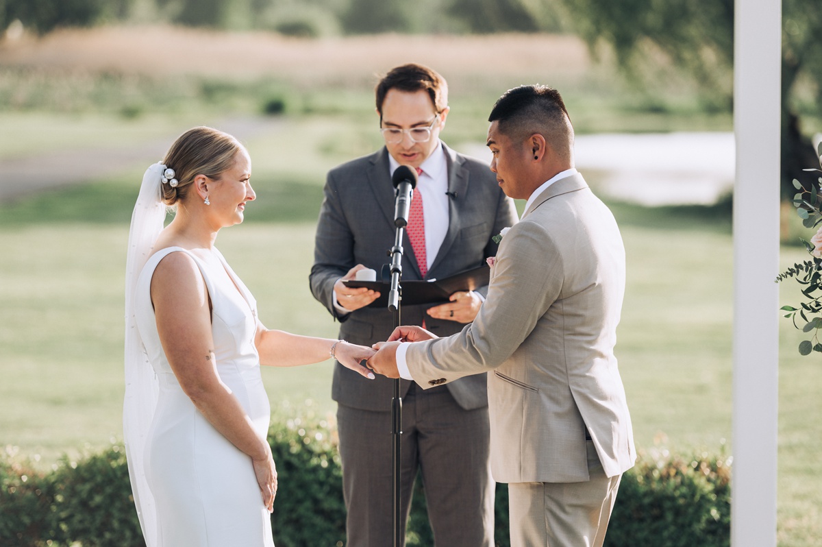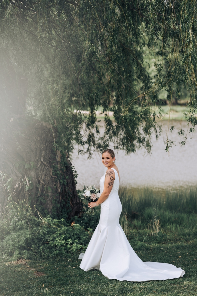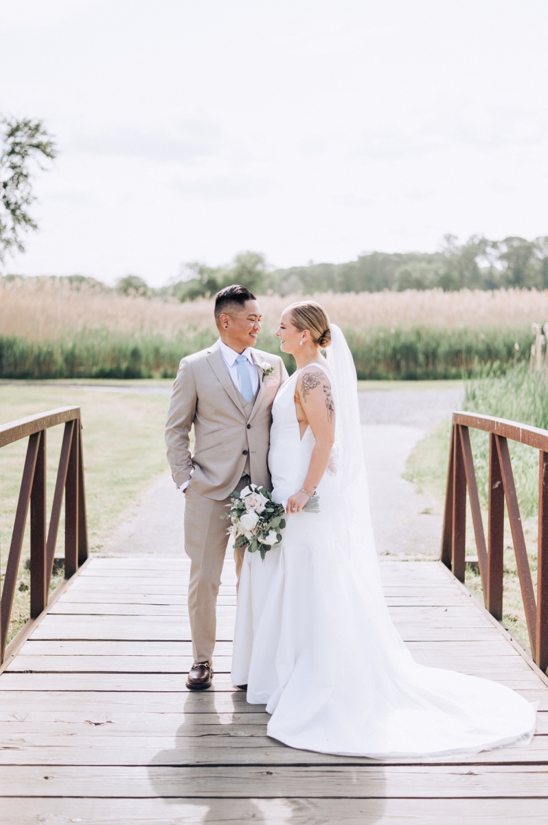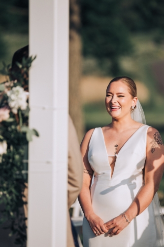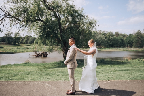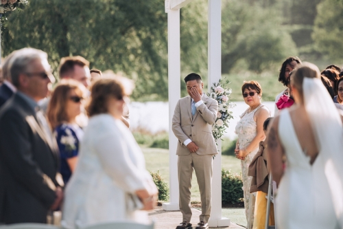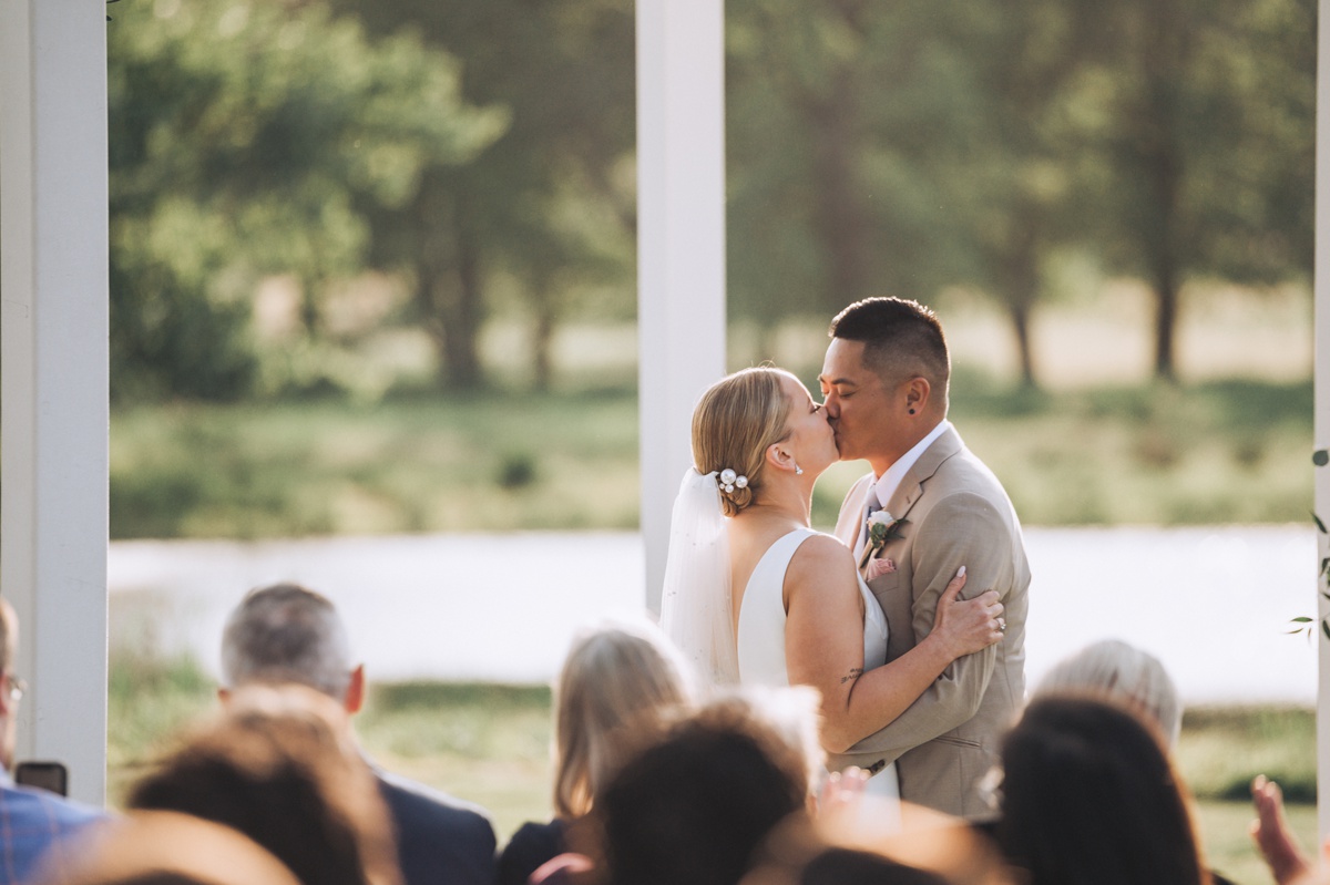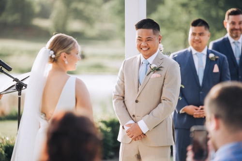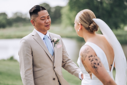 Under the bright, beautiful sun, the couple exchanged their vows in a heartwarming ceremony held by the pond. The serene water added a tranquil element to the day, reflecting the deep love between Jess and Sean.