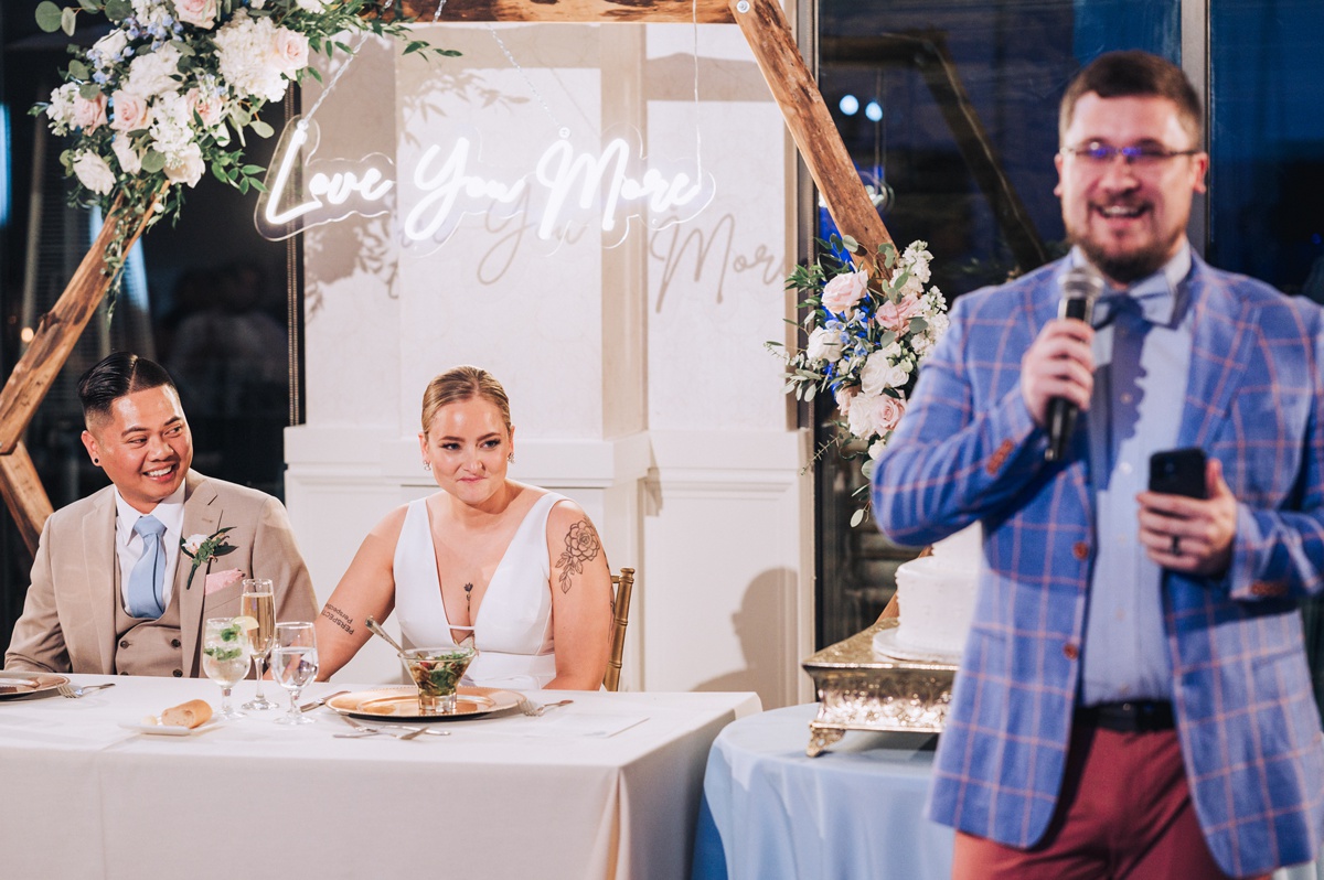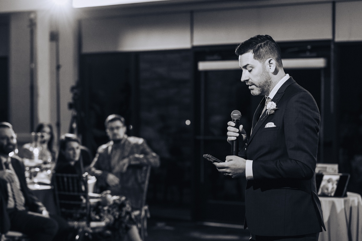 The brides brother giving the speech in place of the MoH who gave birth the day befoee