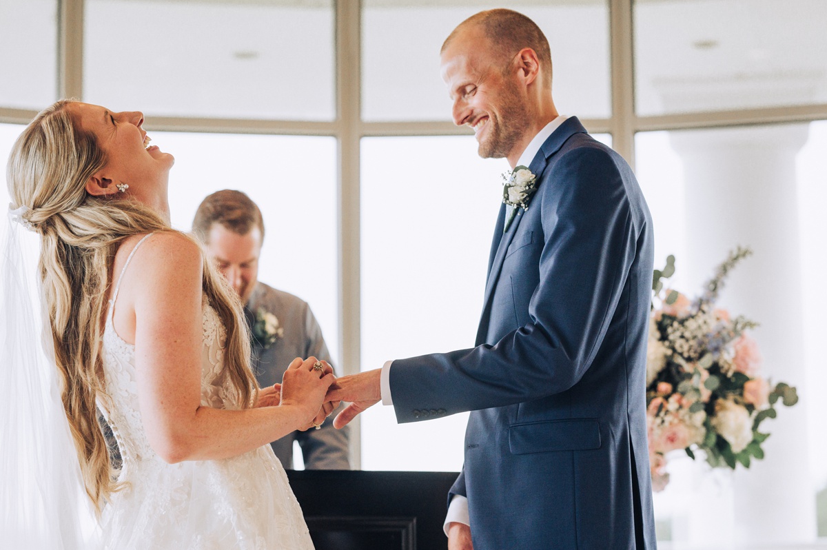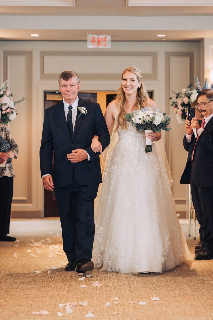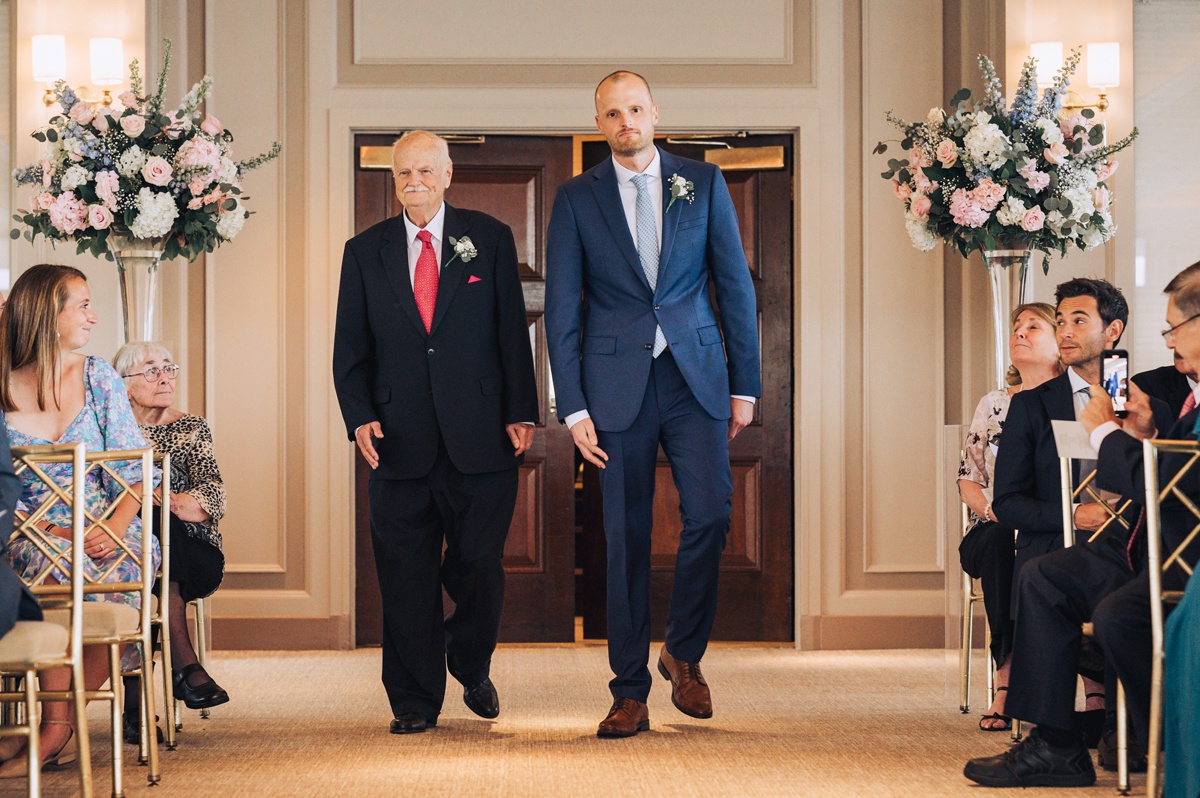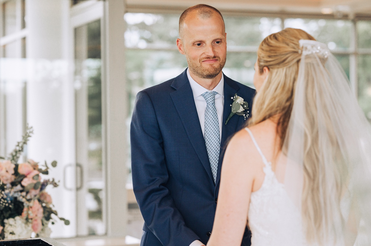 The ceremony itself was held indoors, a beautiful and cool retreat where vows were exchanged. The air conditioning provided a comfortable respite from the summer heat, allowing guests to fully focus on the heartfelt and intimate moments unfolding before them.
