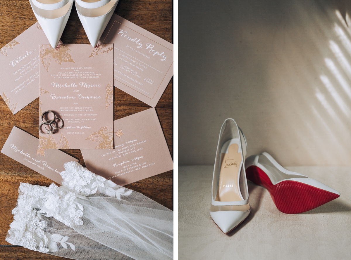 Another killer wedding at the beautiful Lodge at Skaneateles. Michelle and Brandon started their days off site, getting ready with their sides of the wedding party. After they got all dolled up, they traveled over to the church for their ceremony. Once the knot was tied, Michelle and Brandon headed over to the Lodge to get some portraits and wedding party photos done. The weather held off and it was a nice soft overcast sky for our gorgeous portraits. The grounds at the lodge never disappoint and provided the perfect backdrop for Michelle and Brandon. After we were done taking photos, it was time to get back inside for the intros and first dances. The speeches came next and were very emotional. But before long, it was time to turn on the dance lights and get the party going. There’s no party like a lodge party. Everyone had an amazing time celebrating the happy couple. Congratulations Michelle and Brandon and enjoy the photos!