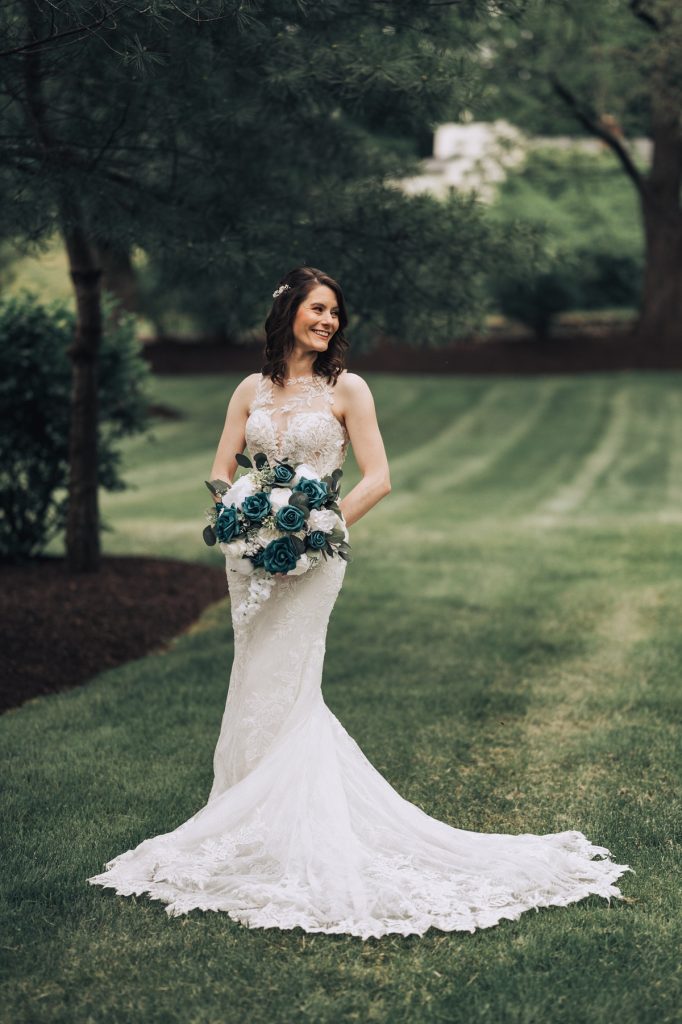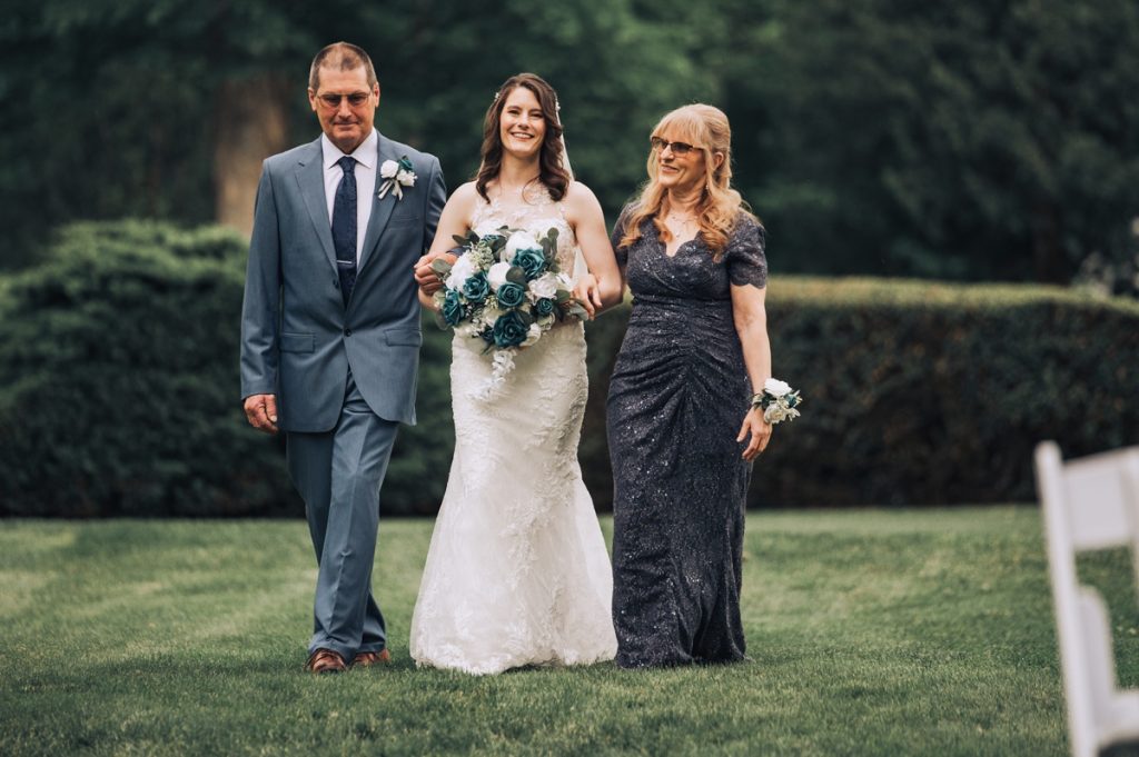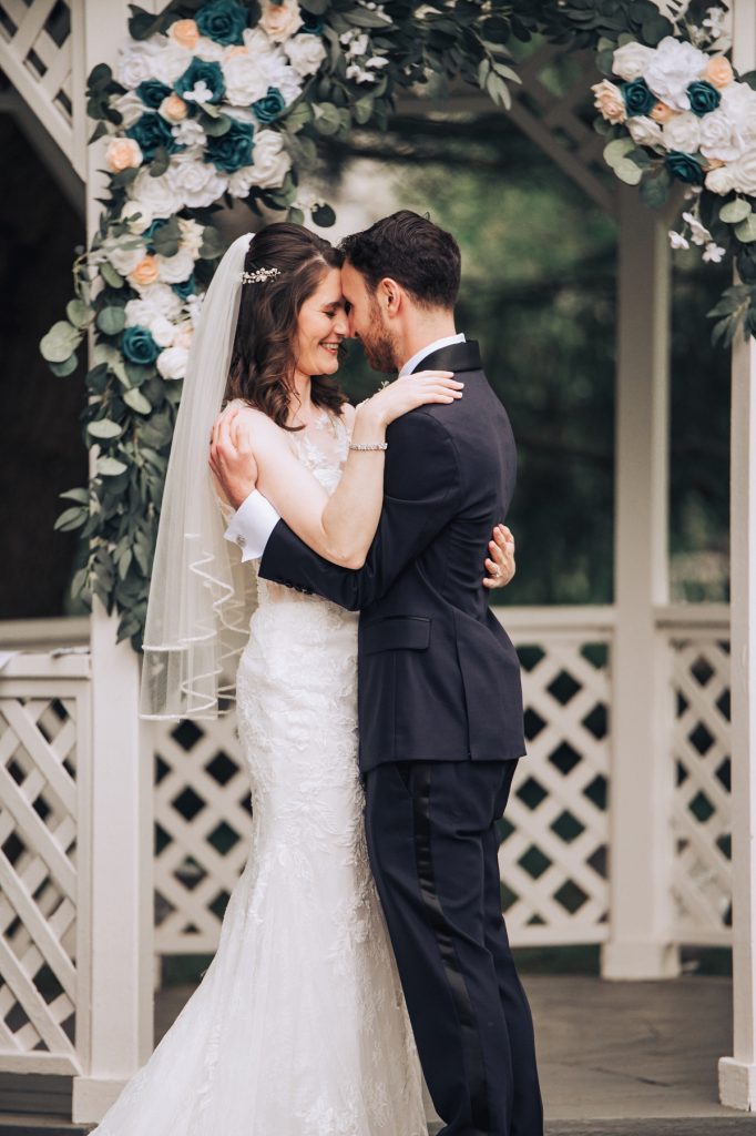 Their ceremony took place outside, in front of the charming gazebo that added a touch of elegance to their vows. The gentle weather complimented the serene setting, creating a perfect outdoor ambiance for saying “I do.”