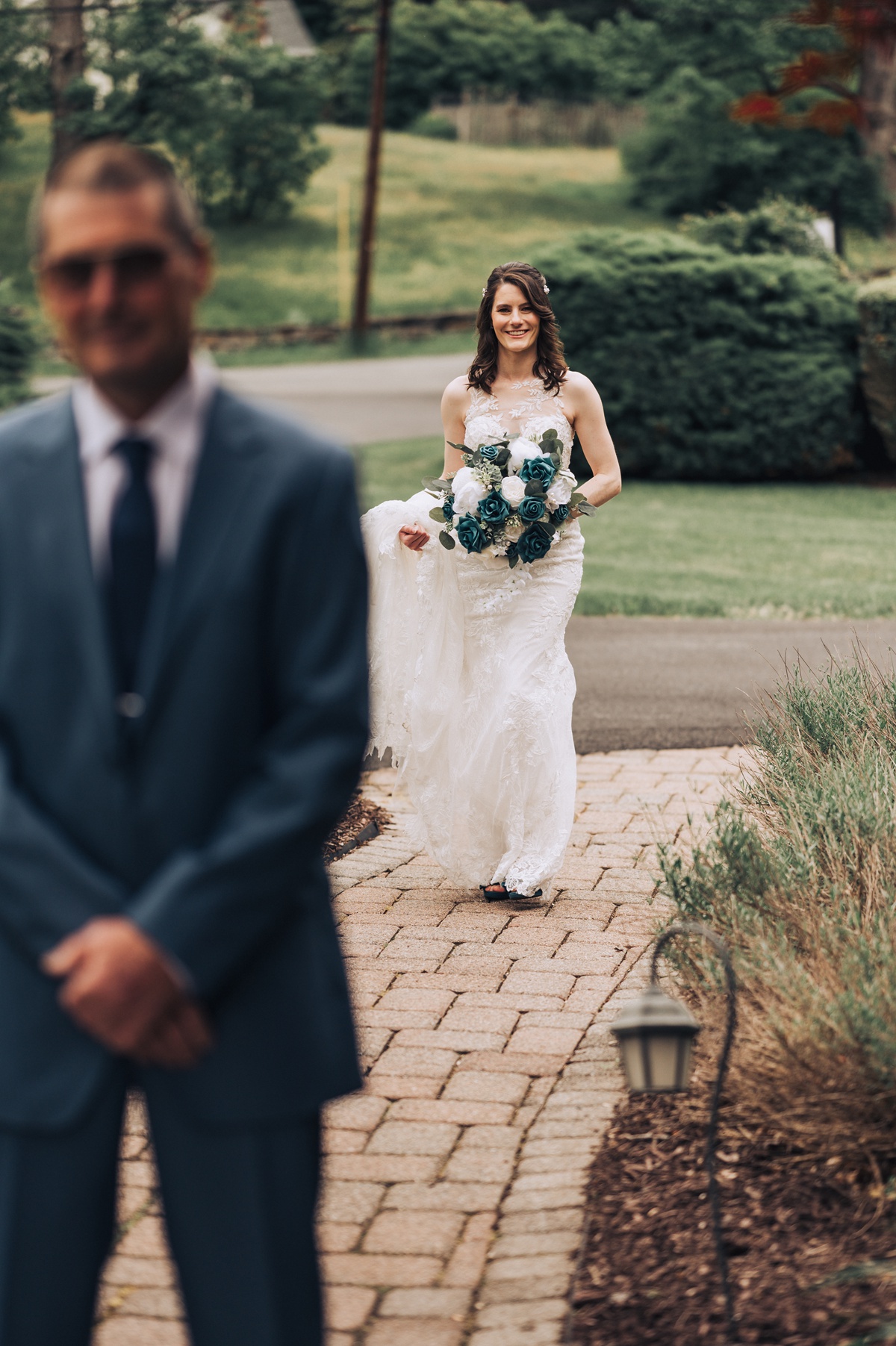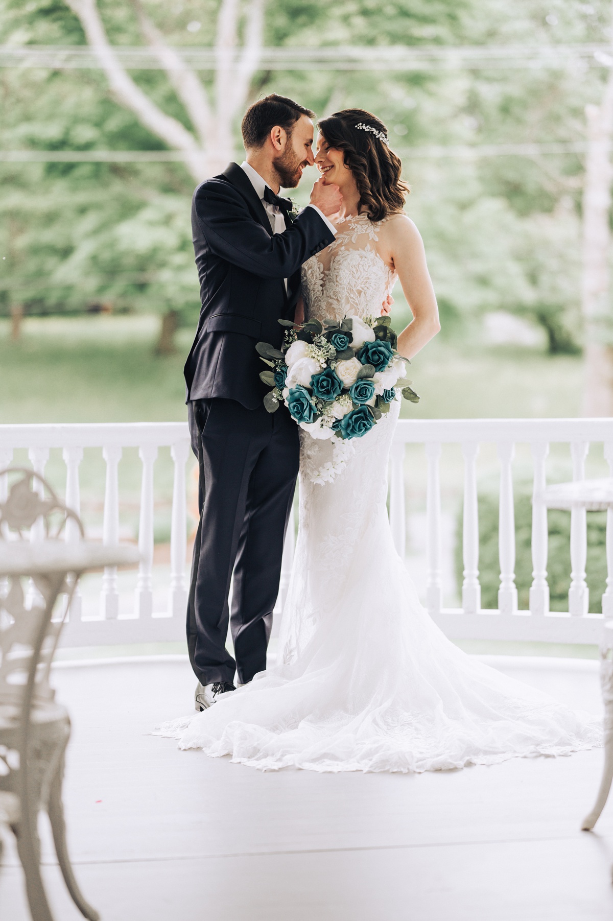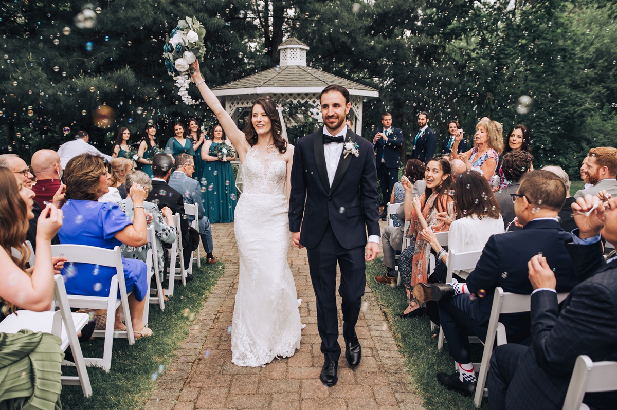 Their ceremony took place outside, in front of the charming gazebo that added a touch of elegance to their vows. The gentle weather complimented the serene setting, creating a perfect outdoor ambiance for saying “I do.”
