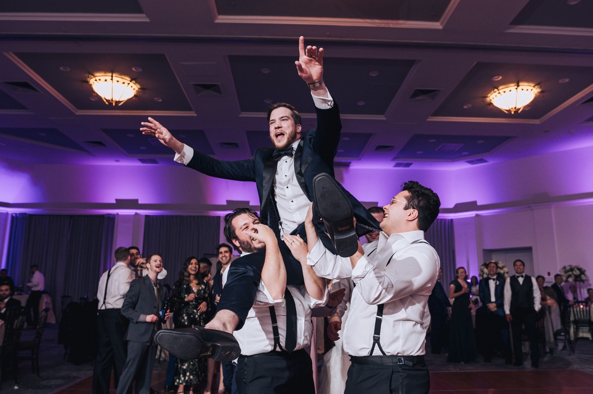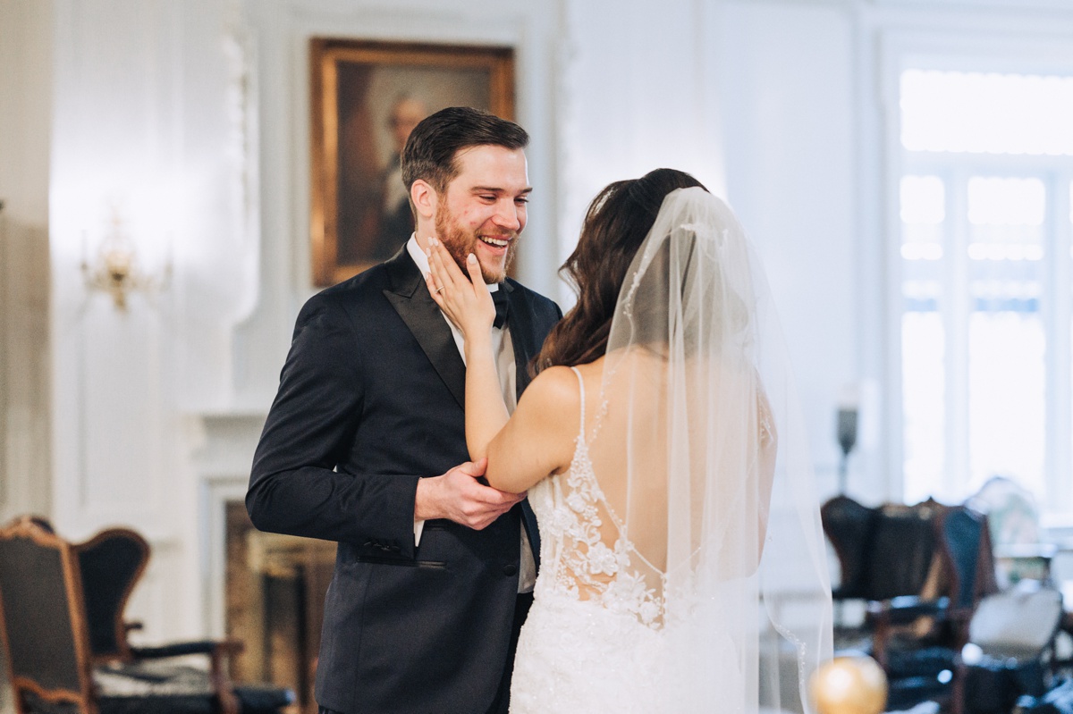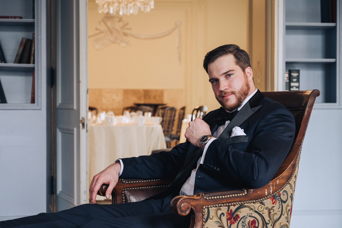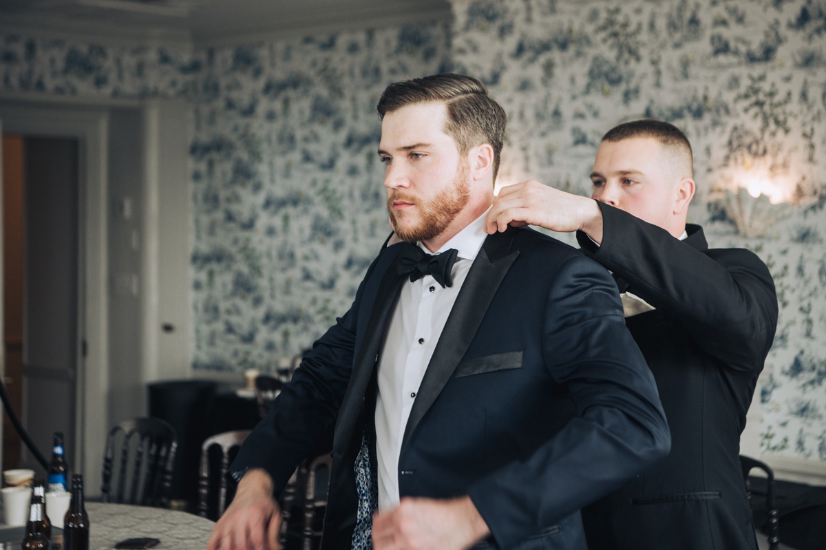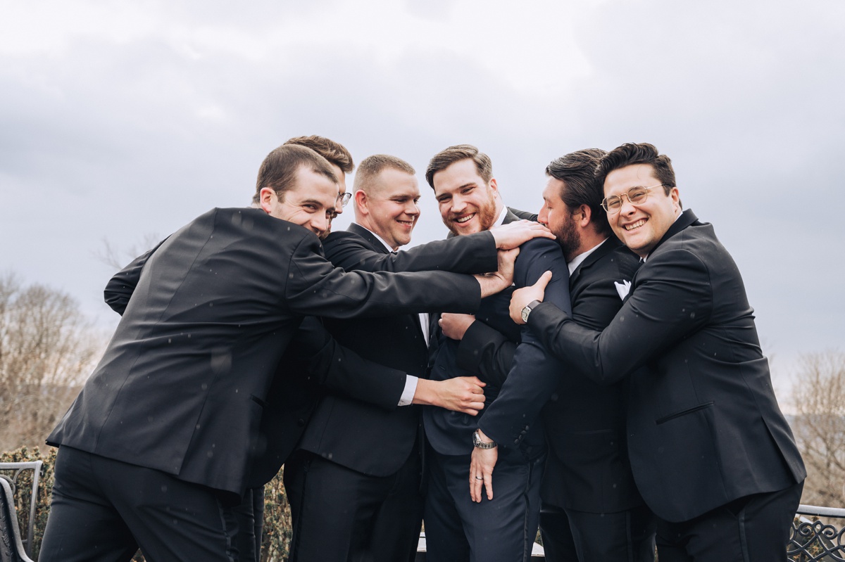 The weather played tricks on us all day. The forecast called for rain in the morning and the afternoon, and we expected it to be cloudy all day. But after the first look, the clouds cleared and we got enough time to get some really great portraits around the property. Sarah and Andrew were really interested in this large craggy tree near the entrance of Tarrytown House Estate, and we made our way down there for a bunch of epic portraits of the two of them. We then got the bridal party involved and the weather held out just long enough for us to complete those photos. The rain entered the scene and we all moved it inside for the touching ceremony. After the knot was tied, the party got into full swing. The band played, the people danced, and everyone was having a great time. A few speeches and special dances ensued and before we knew it, the amazing day had to come to an end. It was the perfect day for a perfect couple. Congratulations Sarah and Andrew and enjoy the photos!