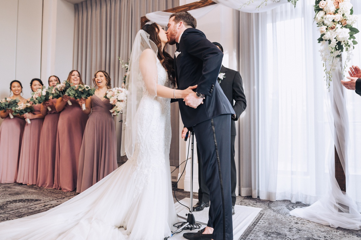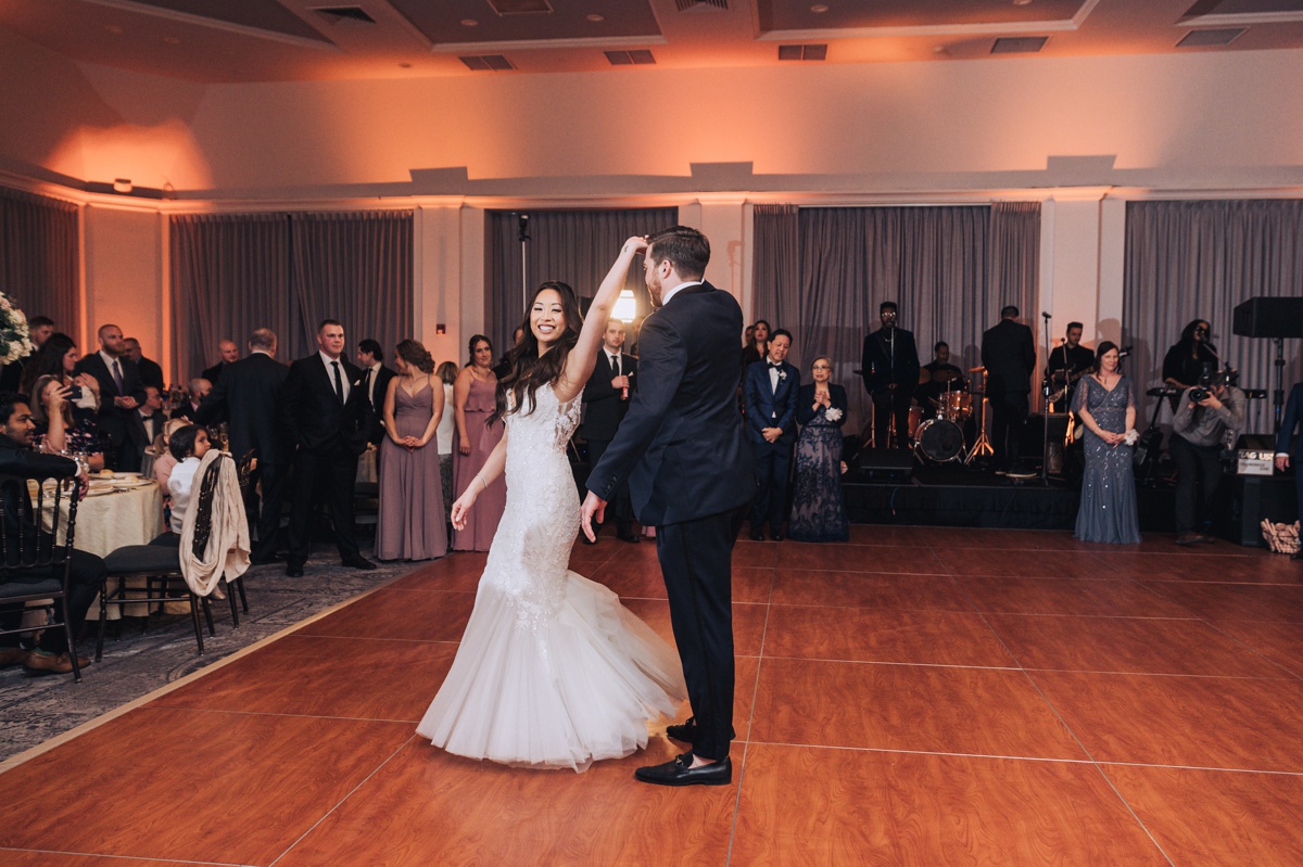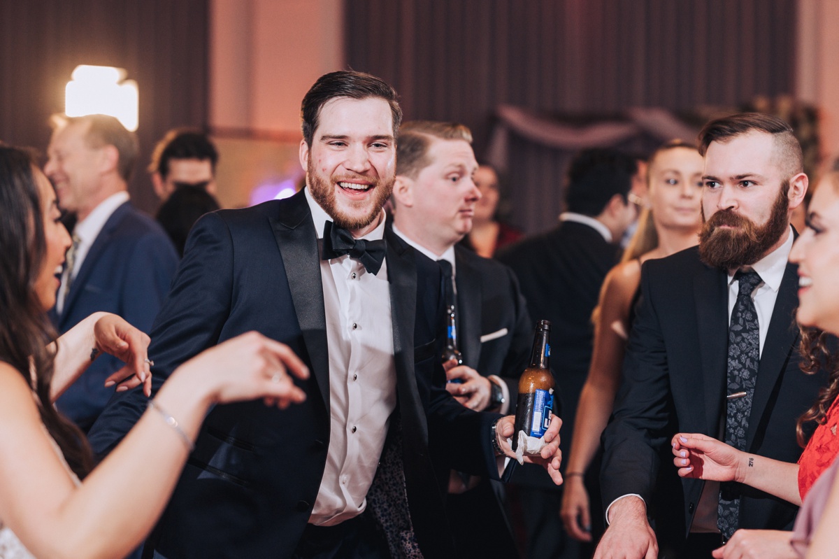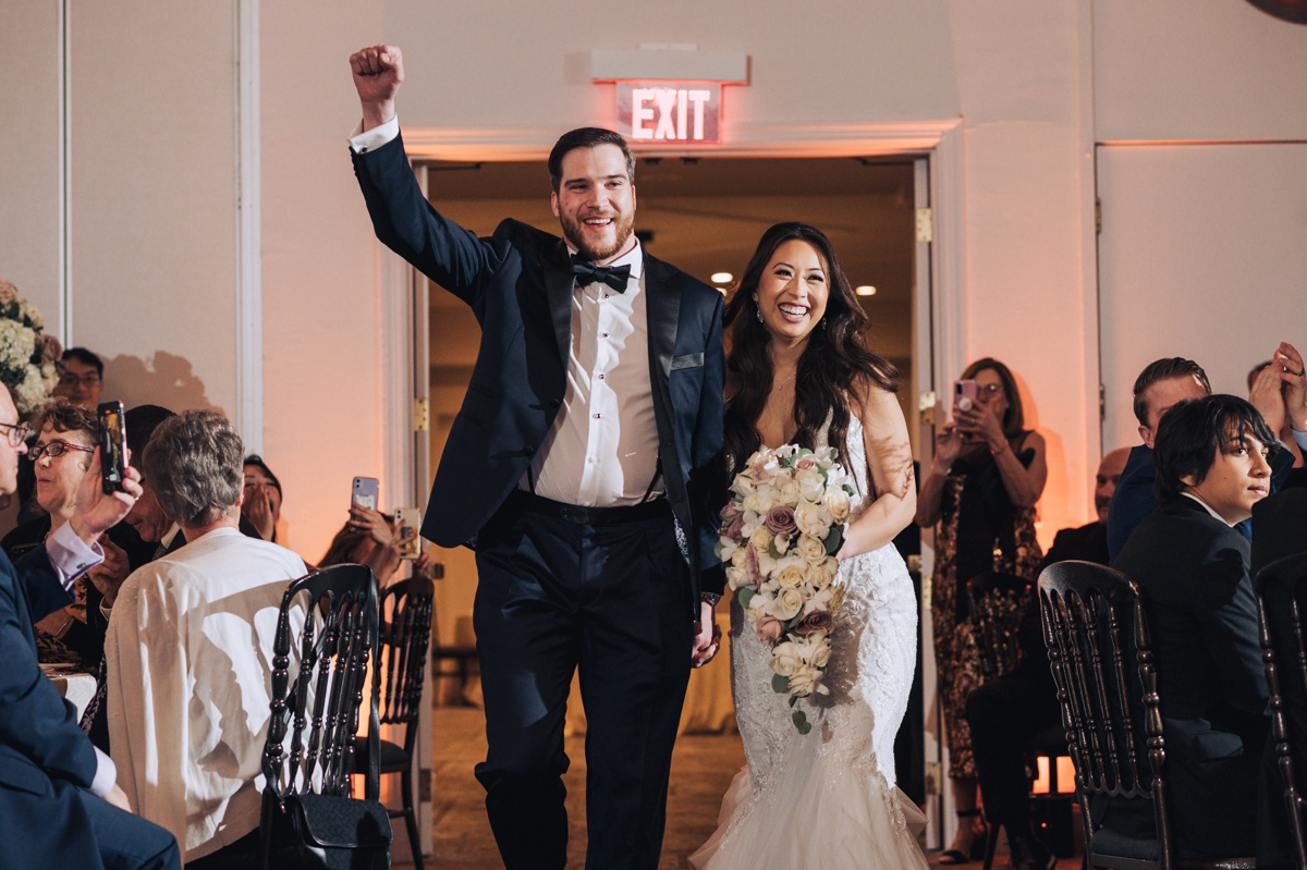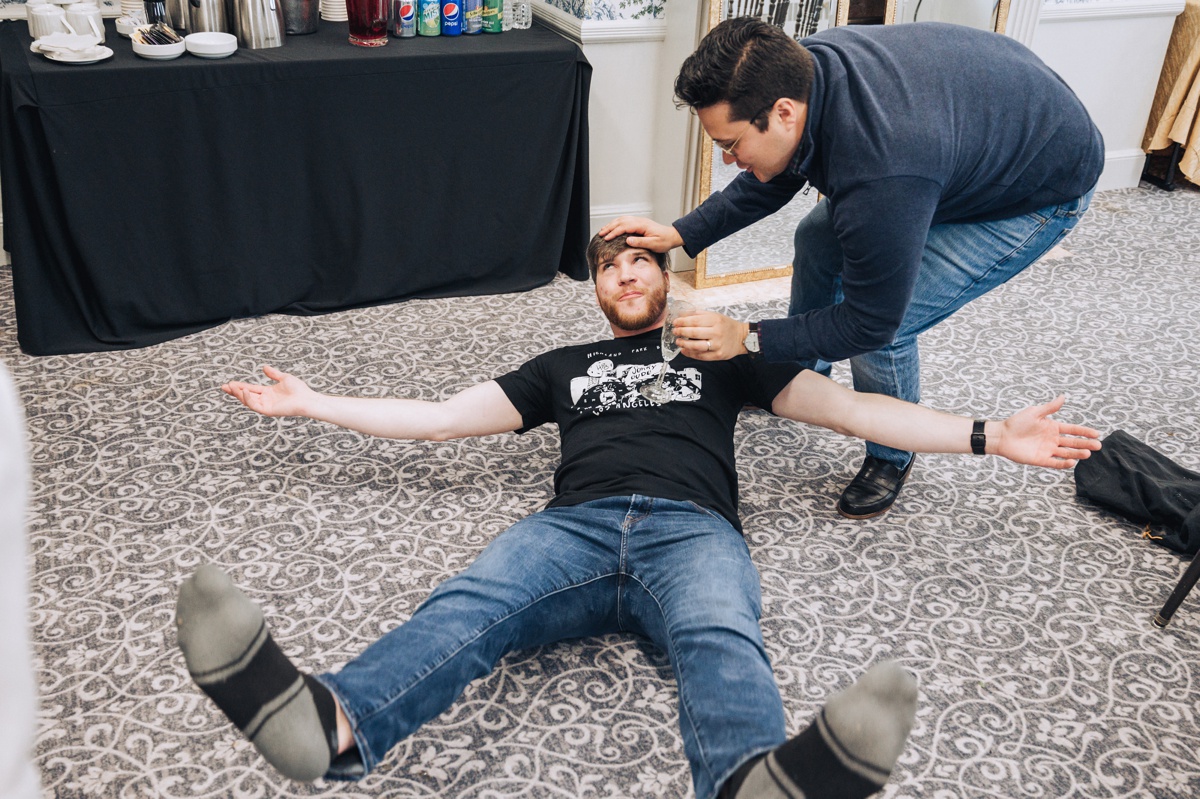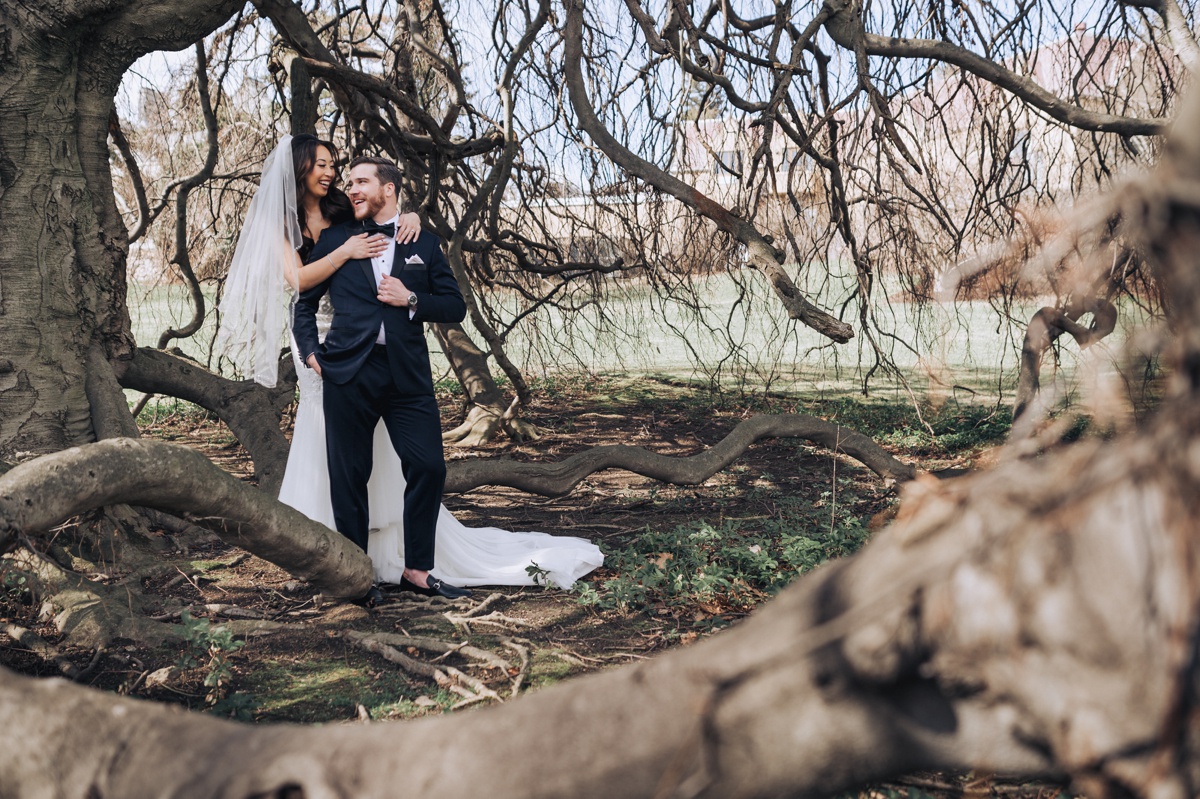 The weather played tricks on us all day. The forecast called for rain in the morning and the afternoon, and we expected it to be cloudy all day. But after the first look, the clouds cleared and we got enough time to get some really great portraits around the property. Sarah and Andrew were really interested in this large craggy tree near the entrance of Tarrytown House Estate, and we made our way down there for a bunch of epic portraits of the two of them. We then got the bridal party involved and the weather held out just long enough for us to complete those photos. The rain entered the scene and we all moved it inside for the touching ceremony. After the knot was tied, the party got into full swing. The band played, the people danced, and everyone was having a great time. A few speeches and special dances ensued and before we knew it, the amazing day had to come to an end. It was the perfect day for a perfect couple. Congratulations Sarah and Andrew and enjoy the photos!