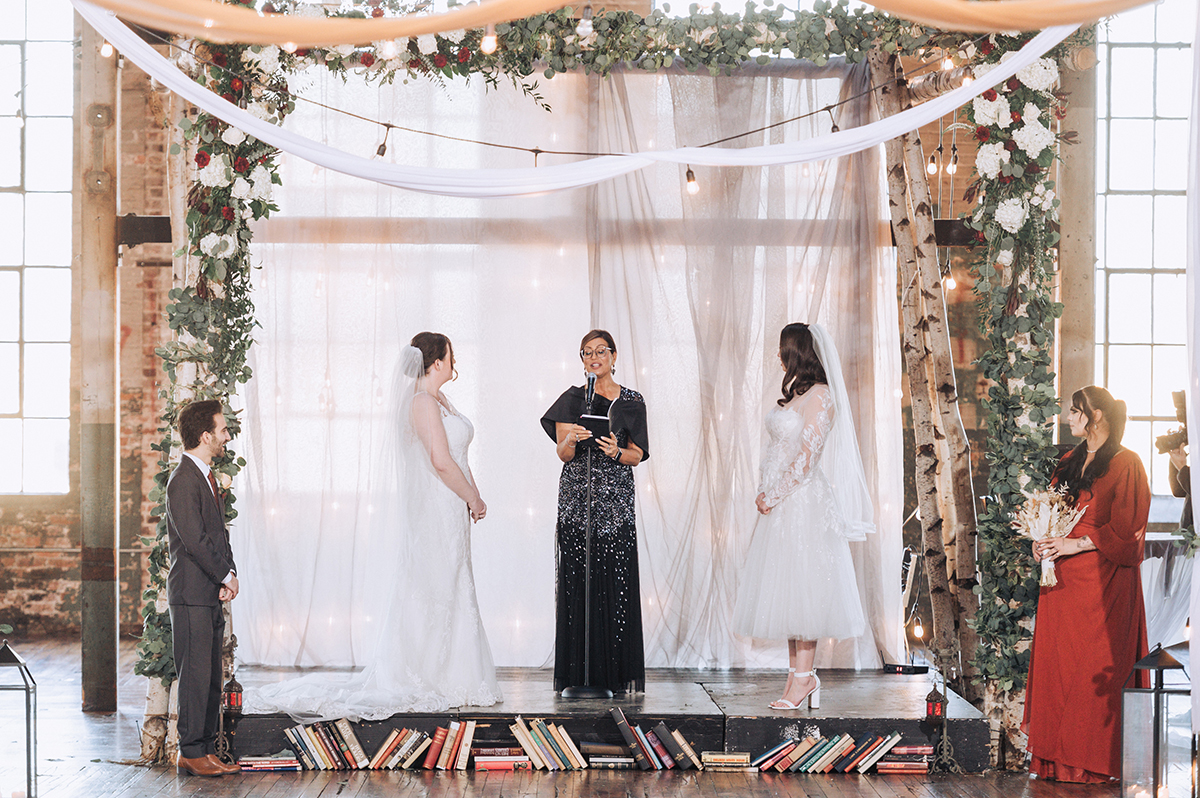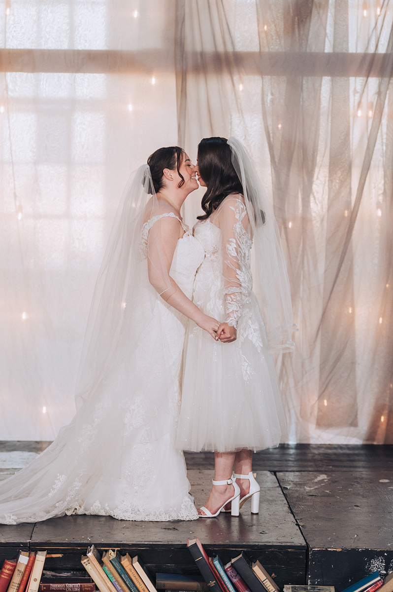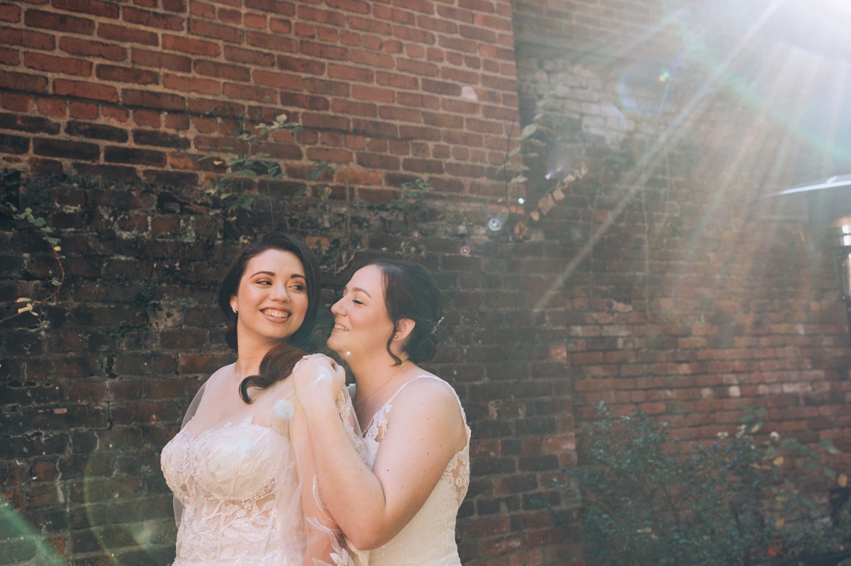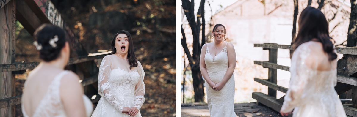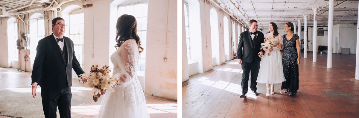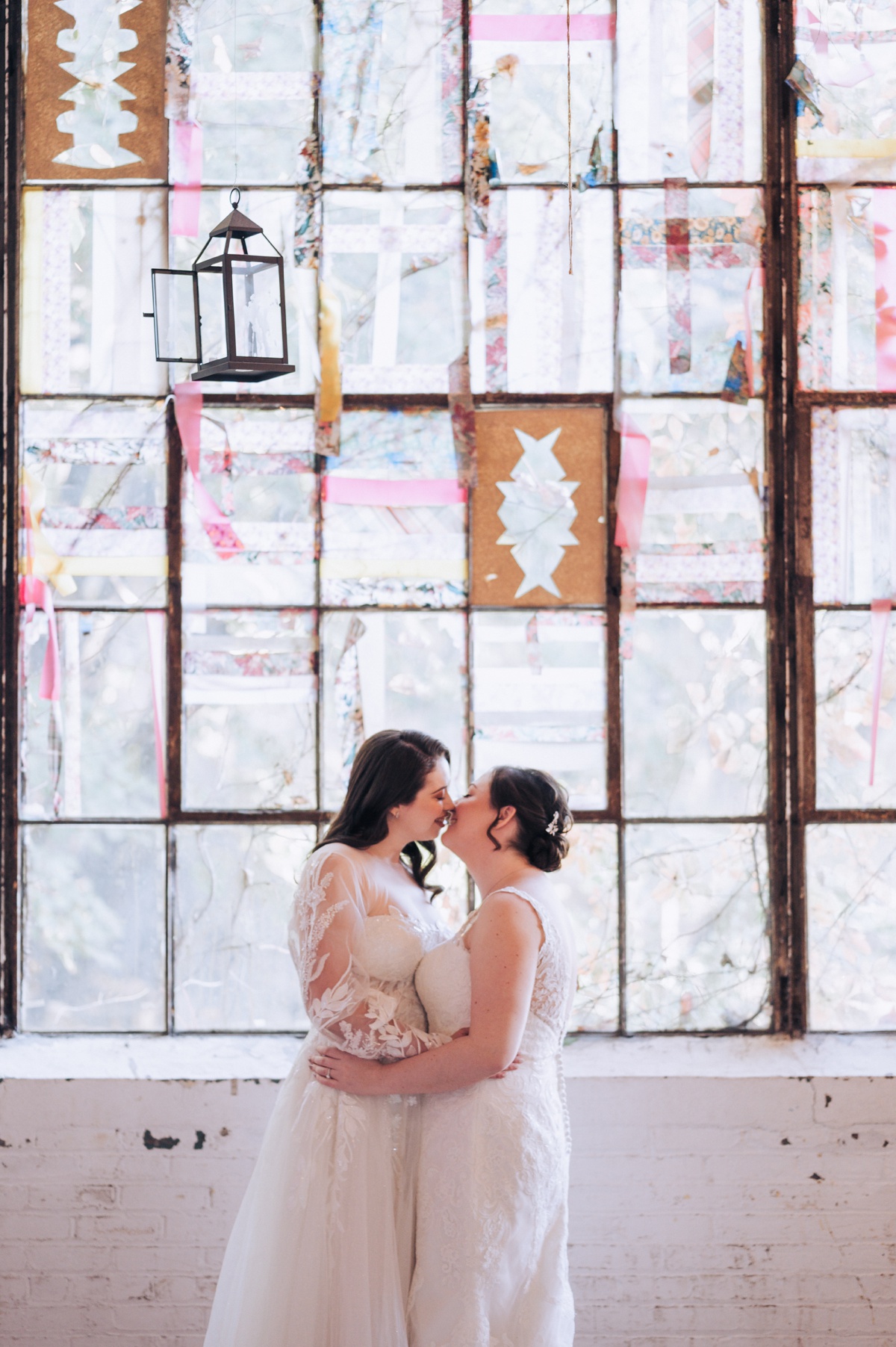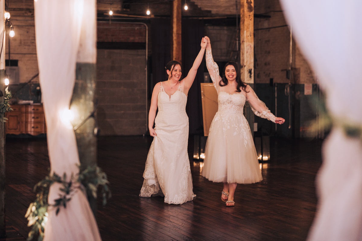 This was my first time being at the Art Factory, and wow, I could shoot here all day. It’s 4 floors of an old industrial textile factory and you could seriously get lost. Room after room offers a unique backdrop and not one space is like another. Both Lindsay and Elena got ready on the 3rd floor and both wanted to have a first look with their fathers, which was so touching. After those first looks, it was time to get out to the bridge for Lindsay and Elena’s first look together. I loved seeing the expressions on their face when they turned around and saw each other for the first time. We then walked around the factory, pretty much wherever we wanted to go, to capture some really epic portraits. As much as I could have gone on and on with portraits, we had to get the happy couple to their ceremony to make it official. The ceremony space was absolutely gorgeous and the ceremony itself was very emotional. Before we knew it, Lindsay and Elena were married! The cocktail hour followed and then it was time for the reception. The first dances were a sight to see and the speeches left no dry eye in the place. After dinner, it was time to party, and Lindsay and Elena’s guests danced the night away. It was a great cap to the evening and everyone had a great time. Congratulations Lindsay and Elena and enjoy the photos!
