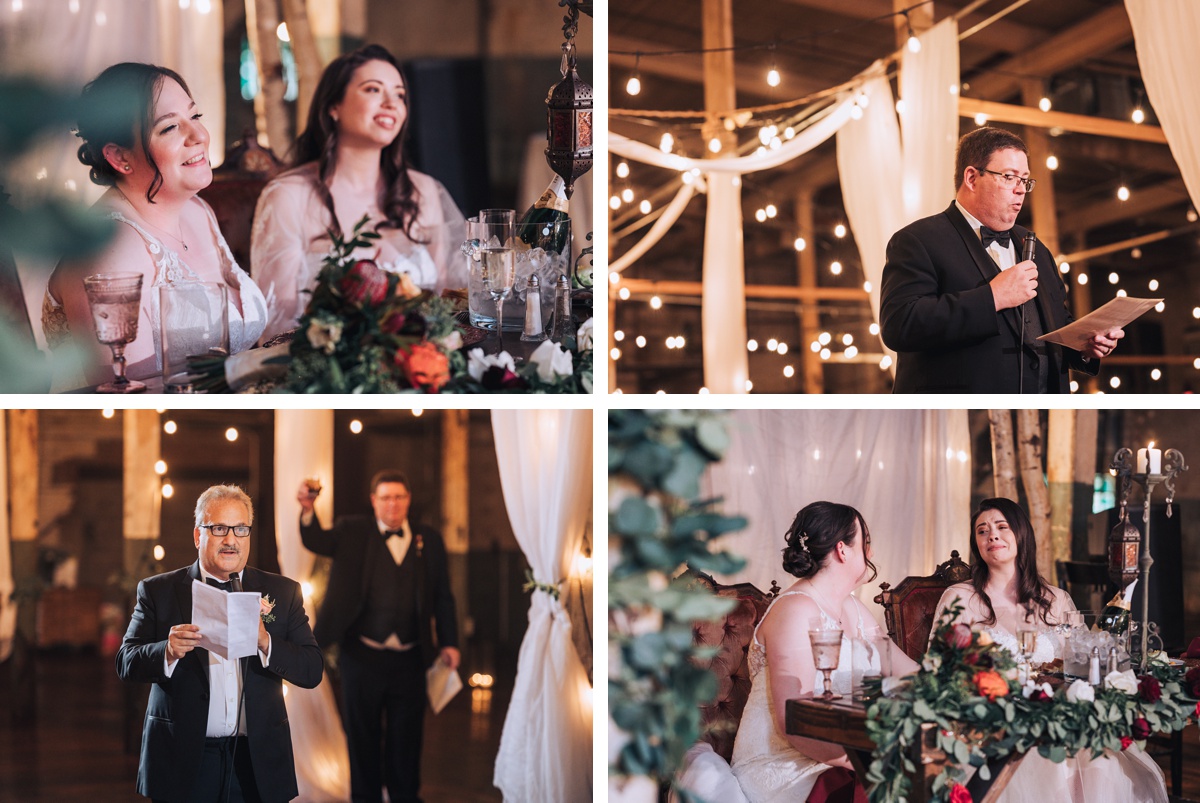 The best man’s speec revealed that Elena’s Poppi (who she was very close to before he passed) had written a card for her wedding years before she even met Lindsay. Cards were big for him and he prepared them years in advance. It was like having him there.