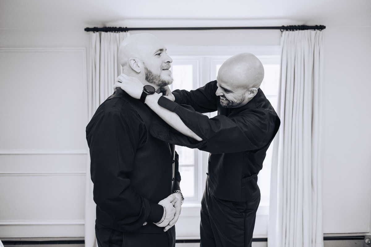 The ceremony took place outside in the courtyard, surrounded by their closest family and friends and twinkling lights. Seeing Jennifer walk down the aisle being very emotional was so touching. It was a beautiful ceremony with an amazing backdrop.