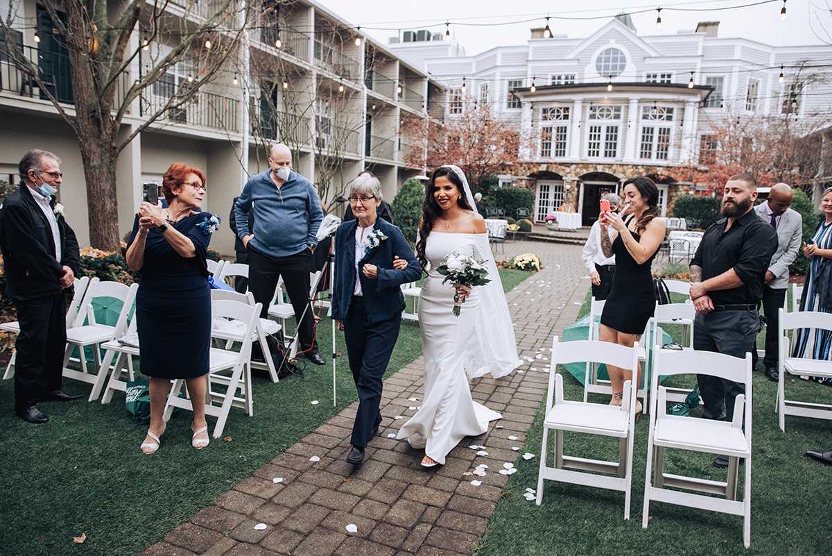 Annie and Dom are another one of my amazing couples that were completely flexible in the year of COVID. They had to scrap their original plans for a bigger wedding, and decided to host a small get together in November. Their Olde Mill Inn Wedding got a little bit wet, but Annie and Dom were troopers and were able to get some really awesome portraits before the heavy stuff fell. The portraits were nice, but the real winning moment of the day was when Dom got to see his bride come down the aisle for the first time. I love seeing men get emotional when they get to see their beauty walking towards them. The ceremony was short and sweet, and then it was time for a small reception with their closest friends and family. And true to this time period, Annie and Dom were even able to Zoom in some family members that weren’t able to make it in person. It really was such a touching day after such a hard year. Congratulations Annie and Dom! Enjoy the photos!