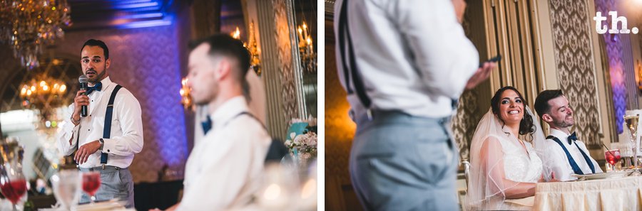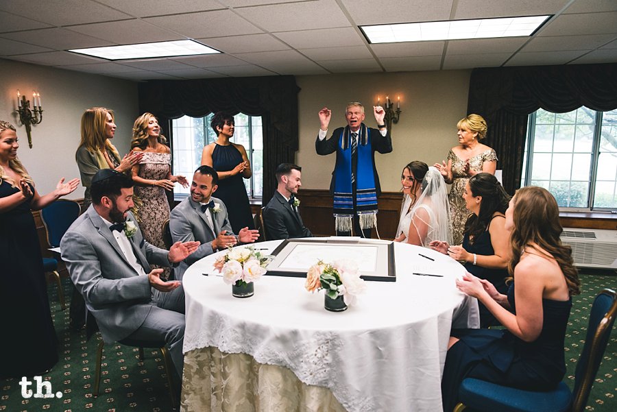 It can get a little tricky capturing wedding photos at a hotel, because of other guests, generic decor, etc., but Rachel and Ryan’s Madison Hotel wedding was anything but generic. It truly was a beautiful and unique venue and I could have shot there all week. There are so many gorgeous spots in and around the hotel, and each of them have a different look. We started the day with Rachel as she and the girls got dressed. Ryan arrived, quickly got into his tux, and headed out front for the couple’s first look. I took that chance to spend some time with Rachel and Ryan to get some really great portraits around the hotel. After the couples portraits were finished, the bridal party joined the party for some group shots, along with some immediate family photos. Before long, it was time to head back inside for the signing of the ketubah and just like that, Rachel and Ryan were officially married. But they also had to declare their love before their family and friends, so everyone gathered in the amazing conservatory for the ceremony. Some circling around each other, wearing the shawl, and smashing the glass put a cap in it. They were now one. After the ceremony, everyone enjoyed a little cocktail hour before it was time to party hardy. Rachel and Ryan were introduced into the ballroom, held their first dance, and then got lifted in their seats during the horah. Then the dancing was on like Donkey Kong, and their guests didn’t disappoint. Everyone had a great time celebrating the two love birds. Congratulations Rachel and Ryan and enjoy the photos and video!