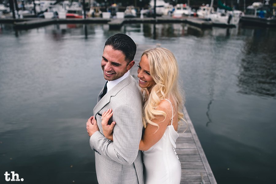 They held their first look on the docks and then we walked down to the water to get some epic portraits. The bridal party joined us for some group shots before it was time to tie the knot at Maritime. The ceremony was beautifully decorated and it was the perfect setting for Tierney and Evan to show off their love. The glass was broken, the kiss was made, and the two were officially married. Just then, the clouds parted and we got an amazing sunset for even more amazing portraits. It was a sign from the wedding gods. But we couldn’t take pretty photos all night. Tierney and Evan were itching to party with their friends and family, and party they did. Everyone had a great time and the party was off the hook. A great cap to the evening. Congratulations Tierney and Evan and enjoy the photos and video!