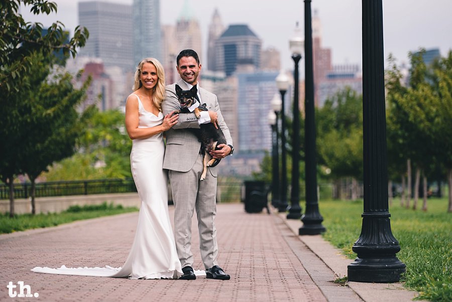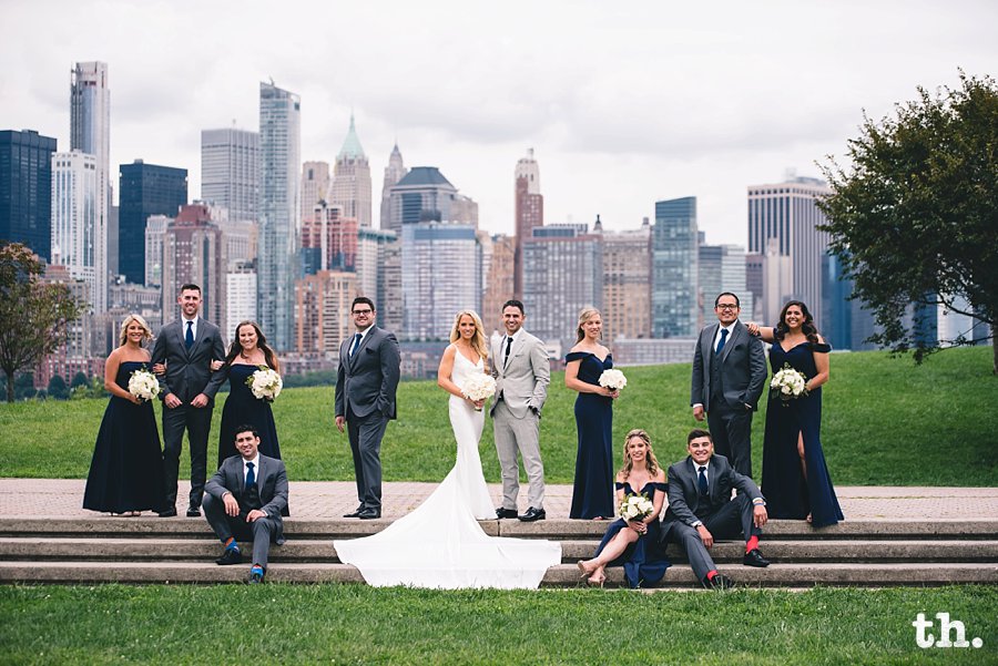 One of my favorite parts of New Jersey is Jersey City and the views of Manhattan that come with it. So it’s always a pleasure when I get to shoot a wedding in the area and utilize the tremendous view as a backdrop. I started my day with Tierney at a nearby hotel while she and the bridesmaids got all done up. My second photographer John joined Evan and the fellas at his apartment to capture Evan preparing for the big day. Before long, Tierney was in her gorgeous dress (what a train!) and Evan was in his suit and we were on our way to Liberty State Park for their Maritime Parc wedding.